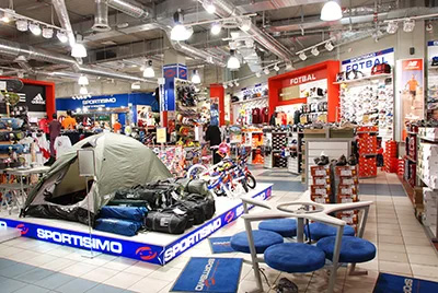 Pokud budeme zařizovat sportovní prodejnu bez konkrétního zaměření, máme široké pole působnosti jak obchod vybavit. Používat můžeme více druhů prodejních systémů, které se budou vzájemně funkčně doplňovat a nebudou se designově rušit. Například: Slat panely můžeme nápaditě doplnit stojinami ARKSYS a vytvoříme krásné funkční vybavení, které nevyžaduje montáž do stěn. Při zařizování využíváme široké spektrum barev, obchod bude živější. K dispozici máme spousty reklamních a dekoračních doplňků. Během roku můžeme, a také bychom měli, měnit design a funkčnost celého prodejního systému podle aktuálně prodávané sezónní nabídky. Jednoduše s takovýmto typem obchodů můžeme doslova čarovat. Když použijeme základní SLAT panely, které doplníme barevnými horními límci s výraznou reklamou, nebo jednotlivá oddělení - např. značky - umístíme do plastických a barevně odlišných bran, které musí nést na svém vrcholu označení o vystaveném druhu zboží, získáme tak při dodržení základních pravidel přehledný obchod, ve kterém si zákazník hned u vstupu udělá obrázek o nabízeném sortimentu.